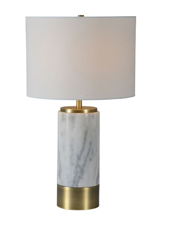 Hainsworth Table Lamp - Illuminate your space with sophistication! This lamp boasts an elegant blend of steel and marble, featuring an antique brass finish and topped with an off-white linen shade. Perfect for adding a touch of timeless style to your home.