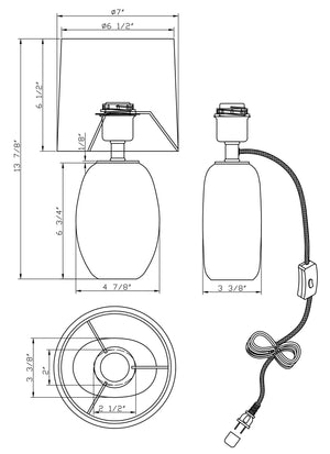 SHADE: tapered drum; 6.5″ø(t) x 7″ø(b) x 6.5″H