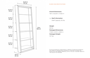 Dimensions: 74" H x 34.25" W x 15.5" D