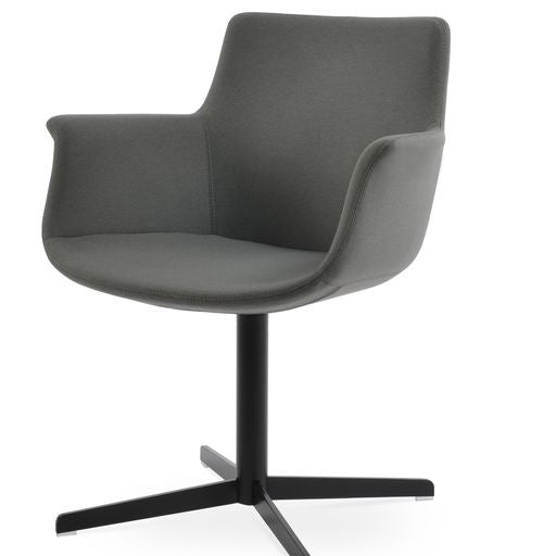 Bottega 4 Star is a contemporary dining chair with a comfortable upholstered seat and backrest on a 4 star matt brushed nickel base. The chrome base is available with automatic memory swivel option that is very convenient. The seat has a steel structure with “S” shape springs for extra flexibility and strength. This steel frame molded by injecting polyurethane foam. Bottega seat is upholstered with a removable zipper enclosed leather, PPM, leatherette or wool fabric slip cover that can be changed with professional help. Bottega 4 Star may be upholstered with variety of other colors as a special order with a minimum quantity requirement. The chair is suitable for both residential and commercial use. Bottega 4 Star is designed by Tayfur Ozkaynak.