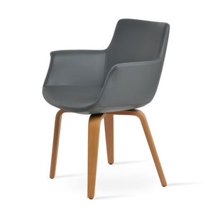 Bottega Plywood is a contemporary dining chair with a comfortable upholstered seat and backrest on wood legs finished in American Walnut veneer, wenge and natural finish. Bottega Plywood has wood legs available in walnut finish. The seat has a steel structure with “S” shape springs for extra flexibility and strength. This steel frame molded by injecting polyurethane foam. Bottega seat is upholstered with a removable zipper enclosed leather, PPM, leatherette or wool fabric slip cover. Bottega Plywood may be upholstered with variety of other colors as a special order with a minimum of quantity required. This contemporary chair is suitable for both residential and commercial use. Bottega Plywood is designed by Tayfur Ozkaynak.