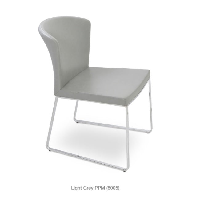 Capri Sled is a contemporary dining chair with a comfortable upholstered seat and backrest on a sled steel legs which are plastic tipped with plastic caps embedded inside the steel base. The seat has a steel structure with “S” shape springs for extra flexibility and strength. This steel frame is molded by injecting polyurethane foam.