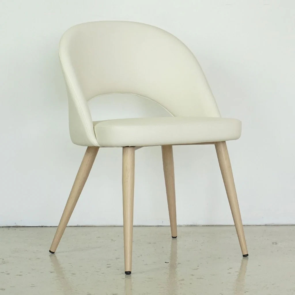 Enhance your dining area with a chair designed for both style and durability. Its tapered metal base, available with a natural or walnut wood imprint, brings a touch of warmth and refined detail to your space. For a bold, contemporary look, a black base option can be specially ordered to suit your taste. The strong steel frame provides lasting support, while the leatherette seats offer comfortable seating that is easy to clean and maintain. This chair is an ideal choice for those seeking a perfect balance of modern elegance and practical comfort.