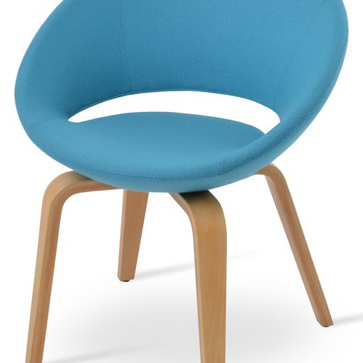 Crescent Plywood is a contemporary dining chair with a comfortable upholstered seat and backrest on plywood legs. Crescent Plywood has wood legs available in walnut finish. The seat has a steel structure with “S” shape springs for extra flexibility and strength. This steel frame molded by injecting polyurethane foam. Crescent seat is upholstered with a removable zipper enclosed leather, PPM, leatherette or wool fabric slip cover. Crescent Plywood may be upholstered with variety of other colors as a special order with a minimum of quantity required. This contemporary chair is suitable for both residential and commercial use. Crescent Plywood is designed by Tayfur Ozkaynak.