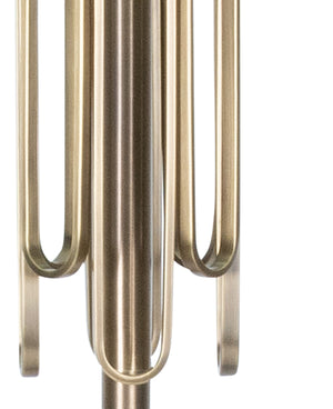 In this floor lamp in Antique Brass, decorative metal loops elevate the look from simple and classic to a work of art. Place this airy, striking floor lamp wherever you need task lighting, like for reading in a living room.