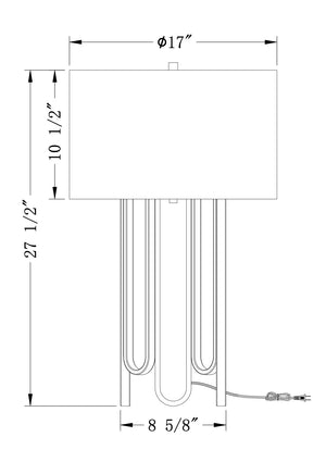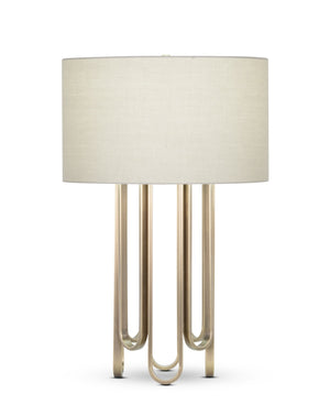 Graceful curves take center stage in this table lamp, which wears an Antique Brass finish on its undulating body. A tailored Beige cotton drum shade complements the look.
