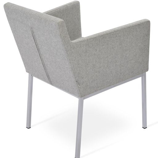 Harput Metal Chair is an armchair with a comfortable upholstered seat and backrest on solid walnut legs tipped with screwed plastic caps. The seat has a steel structure with “S” shape springs for extra flexibility and strength. This steel frame is molded by an injecting polyurethane foam. Harput seat is upholstered with a removable velcro enclosed leather, PPM or wool fabric slip cover. Camira Fabrics are 5 year guaranteed from the date of invoice against wear through (the complete deterioration of the fabric's structure in a particular area) and loss of colourfastness (the excessive loss of colour due to exposure to light). The chair is suitable for both residential and commercial use. Harput Metal Chair is designed by Tayfur Ozkaynak.