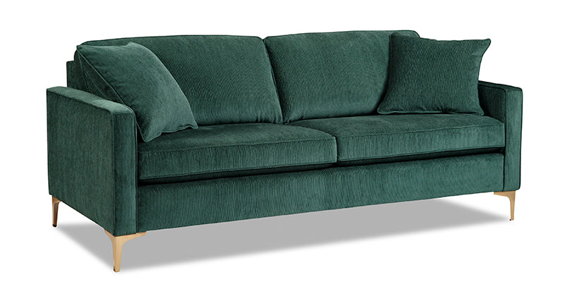 Elegant, traditional, transitional, casual - Superstyle offers a wide range of enduring designs to suit every taste. With superior craftsmanship inside and the finest fabrics outside, you can be certain the Superstyle line of products are of the highest quality. Comfort & Style. Right at home. The Superstyle Furniture 9735 Condo Sofa features a semi-attached back and wooden legs in Espresso or Smoke finish. Shown with optional metal legs in Brass finish.