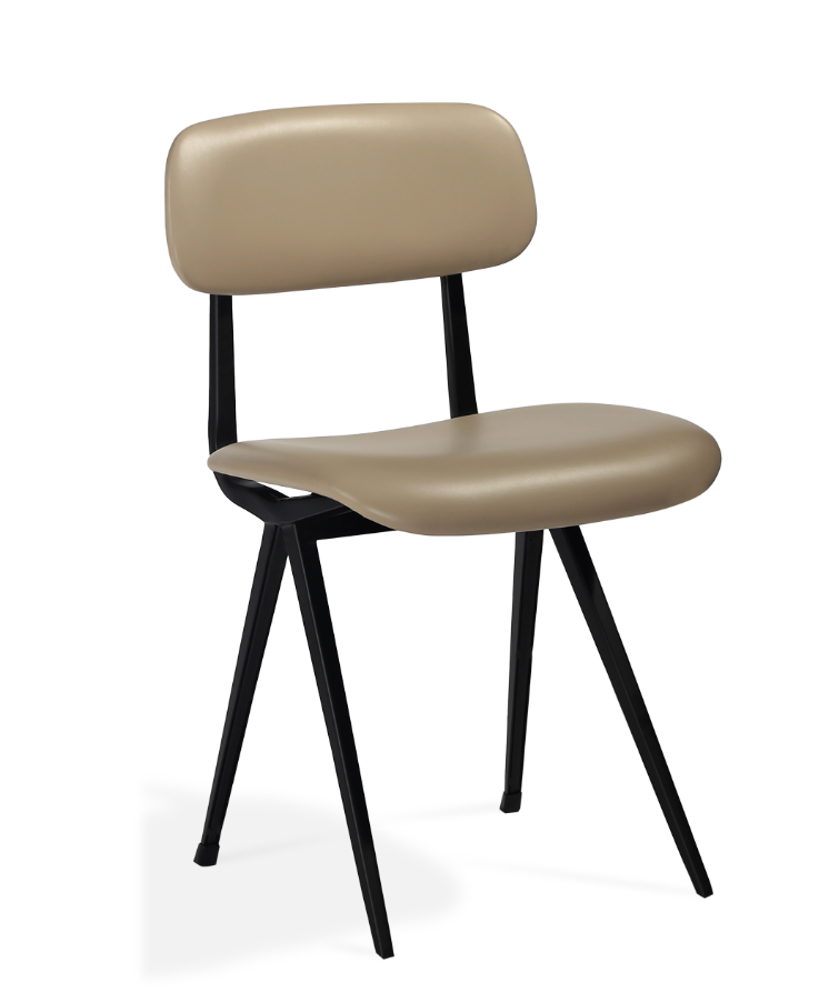 Perla is a industry style chair with a plywood seat and available with upholstered seat. The legs are finished with a metal base. Perla is designed by Industrial Modern team and it's suitable for both residential and commercial use.