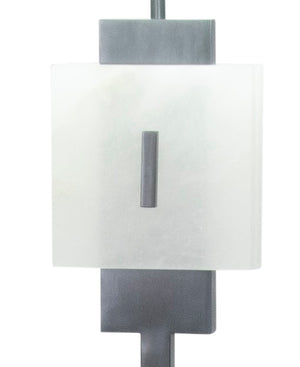 An alabaster square framed delicately in bronze is accentuated by the negative space below and is complimented by the details of the floor lamp’s bottom base. Also available in a matching table lamp.