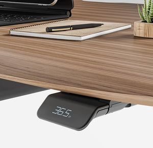 Operating with a gentle push or pull, the sleek digital control paddle moves the desk to the ideal height.