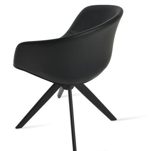 Tribeca Sword is a unique dining chair with a comfortable upholstered seat and backrest on natural and walnut veneer steel base. Each leg is tipped with a plastic glide screwed into the foot. The seat has a steel structure with “S” shape springs for extra flexibility and strength. This steel frame is molded by injecting polyurethane foam. Tribeca seat is upholstered with a removable zipper enclosed leather, PPM, leatherette or wool fabric slip cover. This contemporary chair is suitable for both residential and commercial use. Tribeca Sword is designed by Tayfur Ozkaynak.